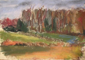 Gesa Helms' discovery of pastels has been a colorist romp through nature's basket. Want loose handling? If so, I offer Gesa's art as an example of open and honest exploration of marks, colors and responses to the scene.